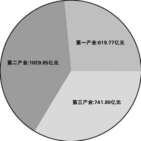 全省生產(chǎn)總值首次突破5000億元大關(guān),達(dá)到5401.71億元,按可比價格計(jì)算,比上年增長9.4%,增幅高于全國平均水平0.3個百分點(diǎn)。其中,第一產(chǎn)業(yè)完成增加值798.35億元,增長5.8%;第二產(chǎn)業(yè)增加值2580.58億元,增長9.7%。三次產(chǎn)業(yè)結(jié)構(gòu)由2002年的14.2∶49.2∶36.6調(diào)整為14.8∶47.8∶37.4,第三產(chǎn)業(yè)比重進(jìn)一步提高。
