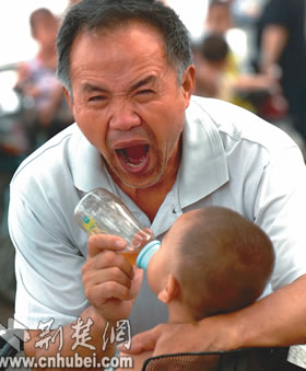 在鄒醫(yī)生的診所里,坐著一個打點滴的病人!岸际峭k姾Φ!這么熱,我哪躺得下!”他苦笑著。鄒醫(yī)生不時站起來,為幾個病人換頭上的濕毛巾。