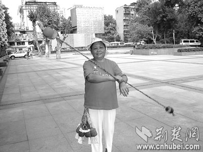 荊楚網(wǎng)消息(楚天都市報(bào))(記者雷艷 實(shí)習(xí)生丁莉娟)繩子兩端各系一個(gè)彩色布球,在空中轉(zhuǎn)起來(lái),彩球像流星飛舞(如圖)。昨日一大早,71歲的魏玉枝來(lái)到漢口中山公園,玩起流星球。