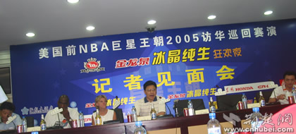 荊楚網(wǎng)消息(記者吳彬彬)美國(guó)前NBA巨星王朝2005年訪華巡演記者見(jiàn)面會(huì)于今天下午3:20在武漢弘毅酒店召開(kāi)。