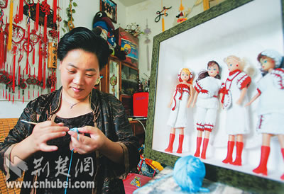 憨態(tài)可掬的企鵝令人喜愛,亭亭玉立的美少女身著靚衣,精美的壁掛配有插花……這些精美的工藝品,都是用毛線編織出來的。昨日,記者走進印迎春的家,被滿室琳瑯滿目的編織品看花了眼。