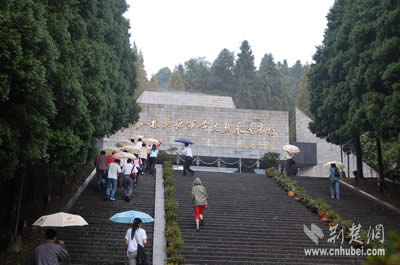 進(jìn)門后,展現(xiàn)在人們眼前的是109級(jí)臺(tái)階,威嚴(yán)肅穆的紀(jì)念堂就矗立在山頂上。導(dǎo)游小姐告訴記者,這些臺(tái)階分為兩組,第一組49級(jí),象征1949年新中國(guó)成立。第二組60級(jí),寓意陵園是在井岡山革命根據(jù)地創(chuàng)建六十周年的1987年建成。