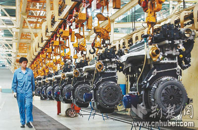 神龍汽車襄樊工廠發(fā)動機生產(chǎn)線。本報記者楊平攝