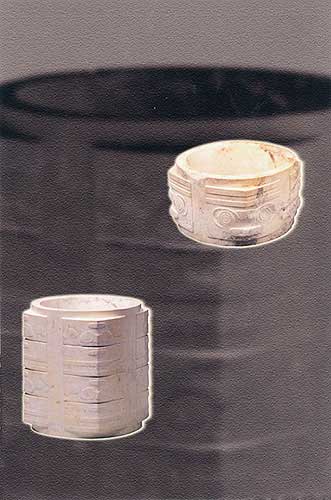 玉琮,禮器(上,高4.5厘米)