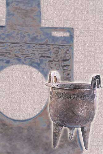 青銅獸面紋圓鼎:炊器或禮器(右,高