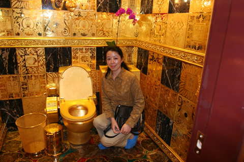 在2002年版的《吉尼斯世界紀錄》上有著這樣一條記錄:“用錢沖洗――世界上最昂貴的衛(wèi)生間由珠寶商林世榮制造,在他的中國香港商店售價240萬英鎊。它完全由金子和昂貴的珠寶制成。抽水馬桶、洗臉臺、刷子、衛(wèi)生紙盒、鏡框、墻上架設(shè)的吊燈、墻上的瓷磚和門全部都由24K黃金構(gòu)成。” “這里有一點寫得不對,我的金廁所決不出售,我還要用它來專門注冊一個品牌,成為我們企業(yè)的象征!绷质罉s在接受記者采訪時,詳細地解釋了自己對“金廁所”的感情。 現(xiàn)任香港恒豐金業(yè)科技集團主席的林世榮說:“整個金廁所都是由我親自設(shè)計、監(jiān)督制造的,我甚至在工地呆過整整三天三夜沒有出來,可以說是傾注了極大的心血。很多人可能不了解我為什么會用這么多黃金來建造一個廁所,其實我不是為了炫耀,也不是喜歡奢侈浪費,我是在完成一個心愿。把土變成金了不起,把金變成土同樣了不起。”