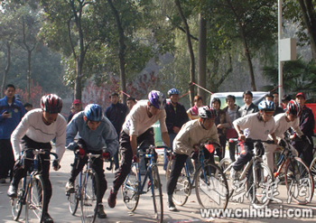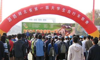 荊楚網(wǎng)消息(記者吳彬彬)2005湖北省第一屆大學生自行車聯(lián)賽今天上午在華中科技大學拉開帷幕,共有來自華中科技大學、中國地質(zhì)大學(武漢)、武漢大學、武漢理工大學、華中農(nóng)業(yè)大學、湖北工業(yè)大學和湖北經(jīng)濟學院的23支隊伍前來參賽。