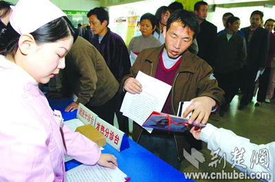 記者在醫(yī)院體檢登記冊上發(fā)現(xiàn),除湖北省各地區(qū)來漢的務(wù)工人員外,還有不少農(nóng)民工來自四川、安徽、江西、河南等地。據(jù)院方介紹,除不屬于此次服務(wù)范圍的武漢市7個(gè)中心城區(qū)市民外,其他前來體檢的外來務(wù)工人員都享受了免費(fèi)服務(wù)。