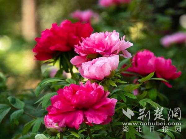 清明期間,武漢植物園內(nèi)3000株牡丹全部盛放,驚艷國色等您來賞。‘寒櫻獅子’‘島錦’‘富貴滿堂’等牡丹清香四溢,風(fēng)姿綽約,盡顯牡丹的“國色天香”。武漢植物園牡丹園以保育展示江南品系、西南品系、中原品系和外國品系為主,目前保育牡丹3000株,有紅、粉、紫、墨、黃、白等花色,單瓣、荷花、繡球、臺(tái)閣等花型。色澤淡雅的保康牡丹輕逸出塵,一展牡丹的婉約風(fēng)姿。日本牡丹‘島錦’一花雙色,花朵在紅白相間,為少見的復(fù)色牡丹。還有墨色的‘珠光墨潤’,不僅色彩驚艷,花瓣還有著綢緞般光澤,為黑牡丹中的佼佼者。綠牡丹‘綠幕隱玉’如翡翠瑩潤通透,堪稱花中珍品。此外,園內(nèi)國內(nèi)外名品薈萃,展示牡丹的絕代風(fēng)采。