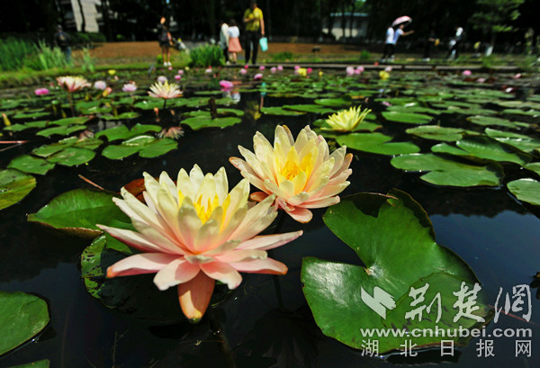 睡蓮展示區(qū),“水中女神”已經(jīng)蘇醒,進(jìn)入超長(zhǎng)花期。印度紅睡蓮、埃及藍(lán)睡蓮、墨西哥黃睡蓮、中國(guó)延藥睡蓮、泰國(guó)招財(cái)女神……武漢植物園睡蓮池臥虎藏龍,展示著世界各地的睡蓮名品。仿造睡蓮花瓣建造成的“八色睡蓮池”已經(jīng)上色完畢,紫、藍(lán)、黃、粉、紅,色彩大膽絢爛,如意蘊(yùn)流淌的藝術(shù)家畫(huà)作。