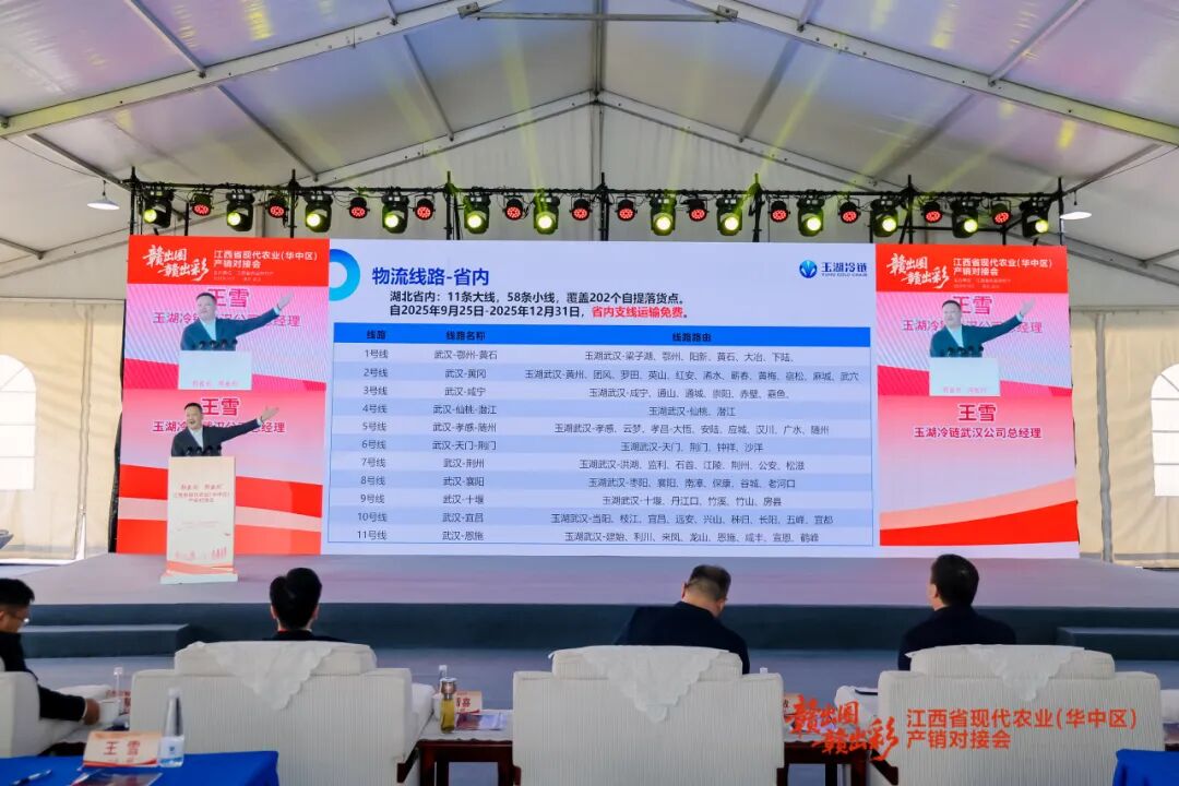 對接會當(dāng)天,玉湖冷鏈武漢公司負責(zé)人介紹了依托黃陂基地構(gòu)建的綜合服務(wù)體系及專項物流優(yōu)惠政策。該體系以“降本增效”為核心,為贛鄂兩地食材流通提供從產(chǎn)地倉儲、干線運輸?shù)浇K端配送的一體化解決方案,助力江西企業(yè)實現(xiàn)“產(chǎn)地直供+華中直銷”的暢通循環(huán)。