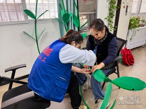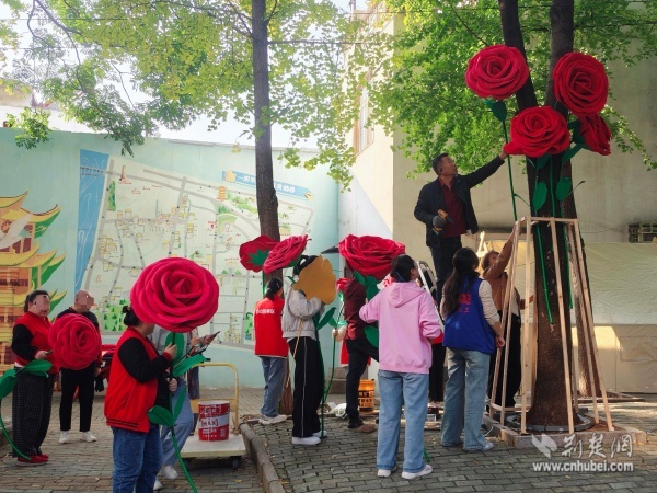 這棵“愛(ài)之樹”是街道殘聯(lián)聯(lián)合西廠口社區(qū)開展的“杏運(yùn)相伴,玫好家園”殘健融合公共藝術(shù)共創(chuàng)活動(dòng)的成果,轄區(qū)陽(yáng)光家園學(xué)員、助殘志愿者、居民代表和社區(qū)工作者共同參與,以親手制作的巨型銀杏葉與玫瑰花裝點(diǎn)社區(qū)空間,傳遞“黃鶴樓下是我家”的溫暖。