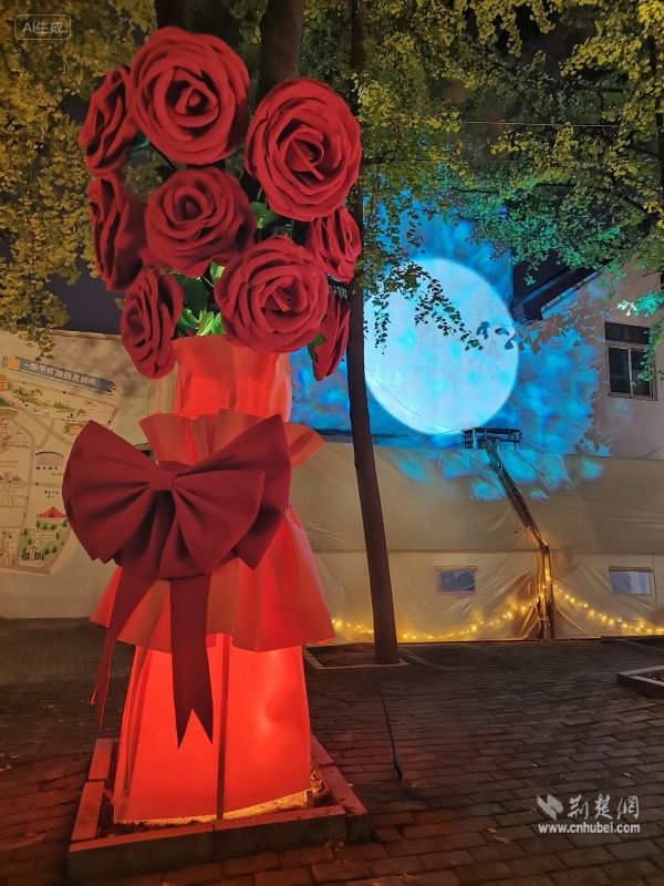 荊楚網(wǎng)(湖北日?qǐng)?bào)網(wǎng))訊(通訊員 陳曉燕 周佳穎)11月5日,武昌區(qū)黃鶴樓街道后宰門街角一道獨(dú)特的風(fēng)景引人注目,一棵“永不凋零”的“愛(ài)之樹”絢麗綻放,樹上盛開的巨型玫瑰花與一旁的月球投影裝置相映成趣,與遠(yuǎn)方的黃鶴樓共同構(gòu)成一幅詩(shī)意城市景觀。