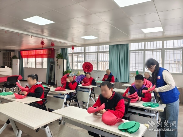 在為期兩周的創(chuàng)作中,陽(yáng)光家園學(xué)員在志愿者的陪伴下,從設(shè)計(jì)畫圖、精準(zhǔn)剪裁到立體塑形、精細(xì)組裝,系統(tǒng)學(xué)習(xí)并逐步掌握了銀杏葉與玫瑰花的制作技巧。“第一次參與制作這么大的藝術(shù)作品,沒(méi)想到我也能創(chuàng)造出這么美的作品!”一位學(xué)員自豪地展示成果。創(chuàng)作過(guò)程中,殘健伙伴分工協(xié)作、各展所長(zhǎng),在默契配合中締結(jié)了深厚情誼。