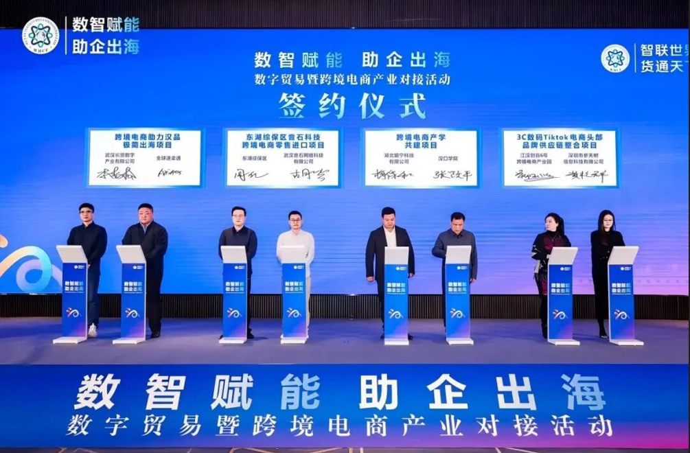 本次對接活動強化產(chǎn)學(xué)研合作對接,共促成10項數(shù)字貿(mào)易和跨境電商產(chǎn)業(yè)鏈生態(tài)鏈合作項目在漢落地,涉及數(shù)字產(chǎn)業(yè)、物流供應(yīng)鏈、智庫建設(shè)、產(chǎn)學(xué)共建、人才培養(yǎng)等多個領(lǐng)域。例如,專注企業(yè)出海營銷的數(shù)字服務(wù)商易海創(chuàng)騰將在武漢設(shè)立華中區(qū)加速服務(wù)運營中心,浙江天誠供應(yīng)鏈、深圳參天樹信息科技等優(yōu)質(zhì)服務(wù)商也將加大在漢業(yè)務(wù)布局。