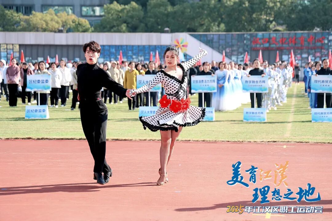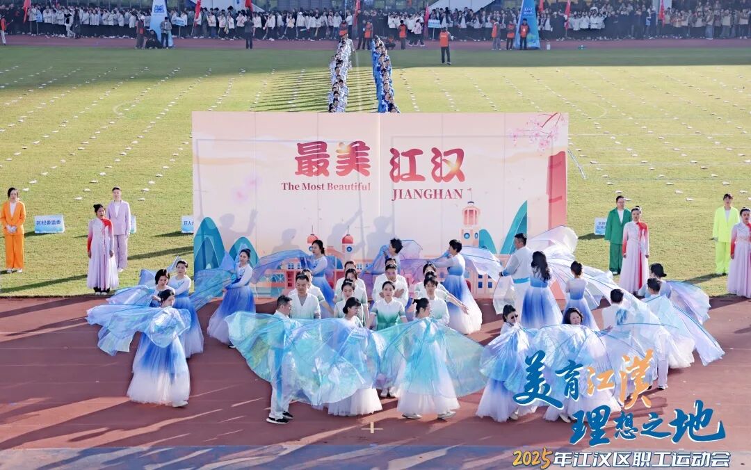 文藝演出環(huán)節(jié)同樣精彩紛呈。開場舞《美麗中國》以熱情舞步禮贊祖國;體育舞蹈《躍動未來》上演力量與美的碰撞;《活力江漢》歌曲串燒中,小歌手彭彥凱與武漢天使童聲合唱團帶來動人演唱,職工歌手聯(lián)袂獻(xiàn)唱《江漢四季》《相親相愛》,引發(fā)全場共鳴;千人工間操展演氣勢恢宏,全場配合呈現(xiàn)“I?JH”巨型畫面,將開幕式推向高潮。