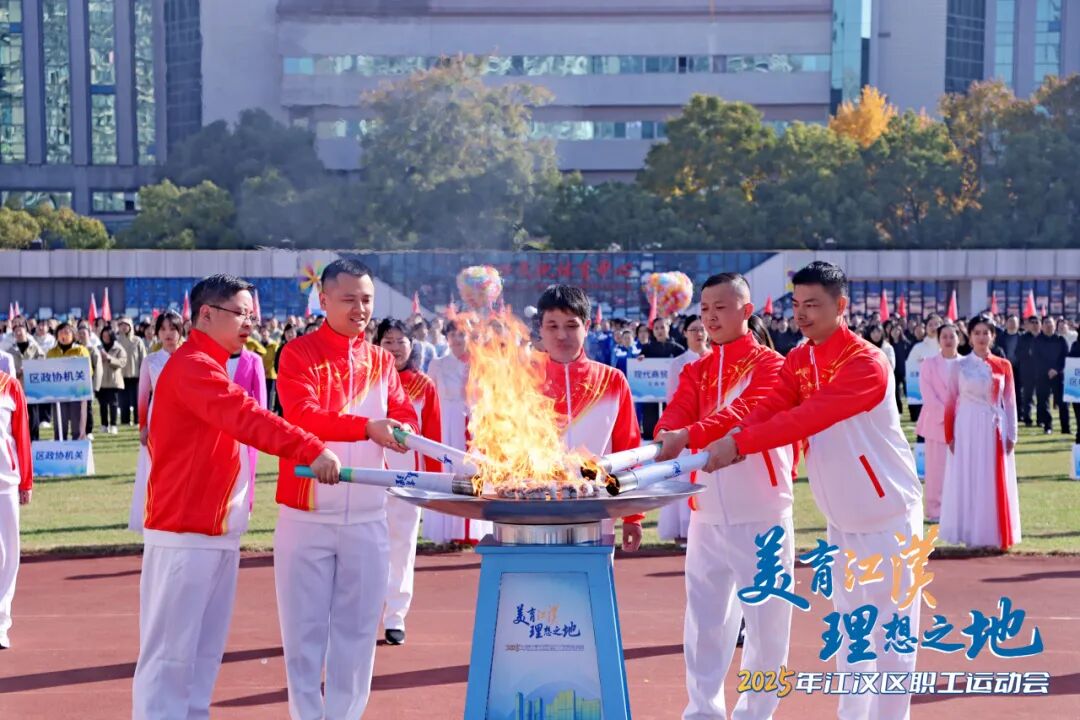 現(xiàn)場,“新興之火”“數(shù)智之火”“金融之火”“樞紐之火”“人文之火”五棒火炬依次點亮,張裕、付俊、邵青、張寶劍、孟廣松等15位勞模代表接力傳遞。燃燒的火焰,照耀著江漢區(qū)在科技創(chuàng)新、數(shù)字化轉(zhuǎn)型、金融強區(qū)、商貿(mào)物流、文商體旅融合等發(fā)展領(lǐng)域堅定向前。當(dāng)所有火炬手共同點燃主圣火盆,彩球騰空,全場沸騰,運動會正式開幕。