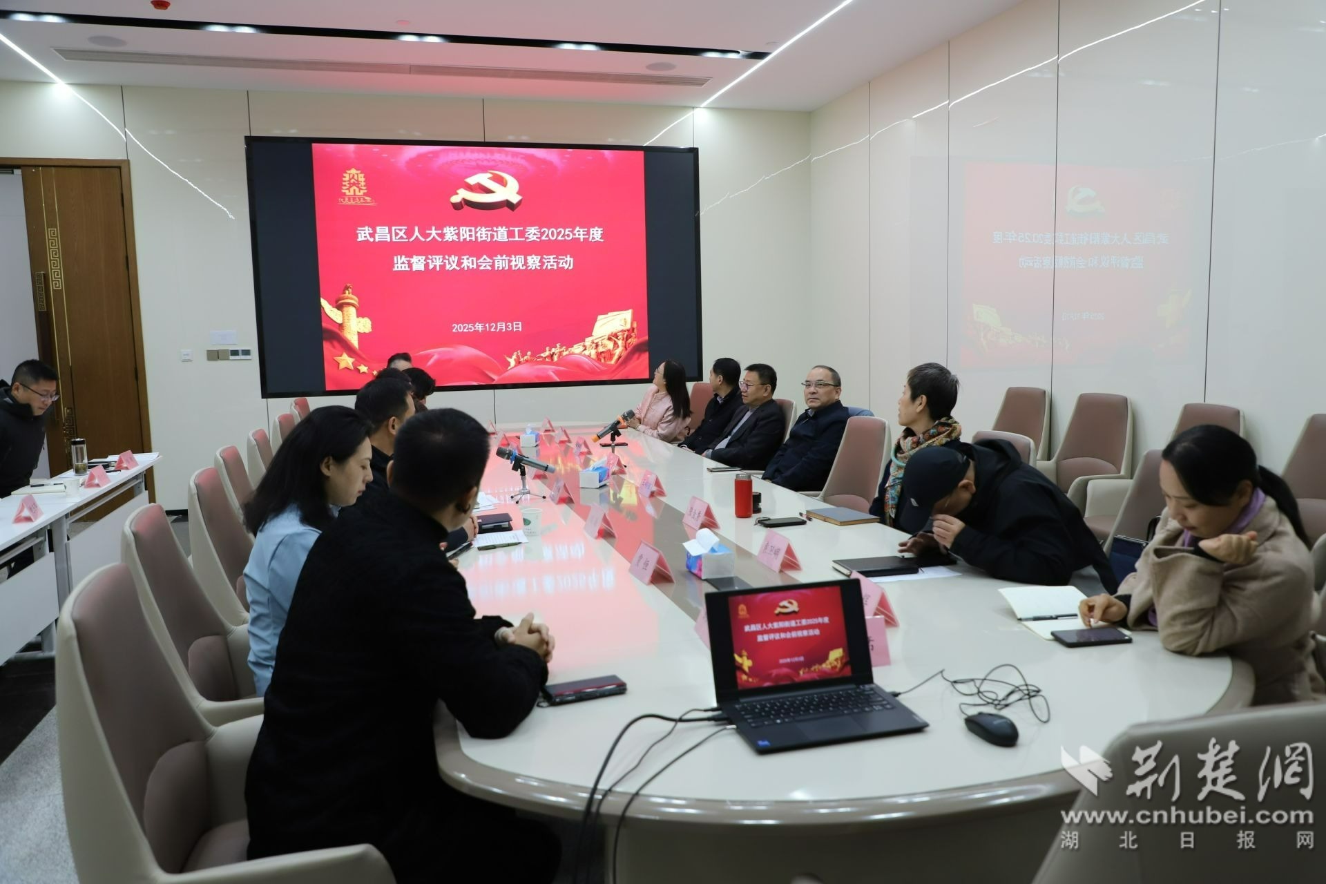荊楚網(wǎng)(湖北日報網(wǎng))訊(通訊員 劉洋)12月3日,武昌區(qū)紫陽街道開展“活化歷史文脈·賦能武昌灣高質(zhì)量建設(shè)”專題會前視察活動。武昌區(qū)人大常委會黨組書記、主任胡太榮帶隊,省、市、區(qū)三級人大代表、政協(xié)委員及相關(guān)單位負(fù)責(zé)人參會,以實地視察、專題研討凝聚發(fā)展共識,共繪區(qū)域文旅融合與城市更新藍(lán)圖。