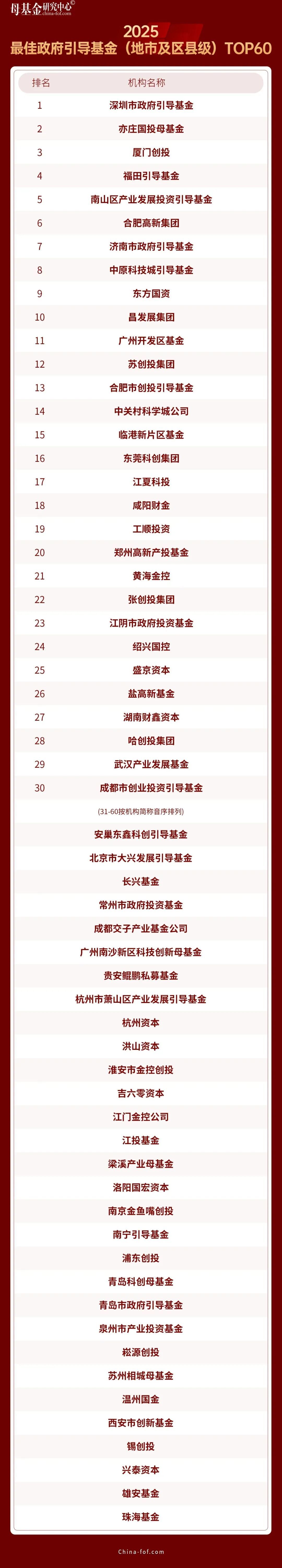 12月29日,母基金研究中心發(fā)布2025年度榜單,江夏科投集團(tuán)獲評(píng)“2025最佳政府引導(dǎo)基金(地市及區(qū)縣)TOP30”第17名、科投集團(tuán)董事長(zhǎng)韓偉榮膺“2025最佳母基金投資人TOP40”稱號(hào),連續(xù)兩年榮登榜單是業(yè)內(nèi)權(quán)威機(jī)構(gòu)對(duì)江夏科投集團(tuán)作為科技創(chuàng)新投資平臺(tái)投資能力、管理能力的認(rèn)可,更標(biāo)志著其在區(qū)域科技創(chuàng)新資源整合、產(chǎn)業(yè)培育布局等方面的能力已躋身全國(guó)地市及區(qū)縣級(jí)引導(dǎo)基金第一梯隊(duì),成為地方政府引導(dǎo)基金助力區(qū)域經(jīng)濟(jì)高質(zhì)量發(fā)展的標(biāo)桿樣本。