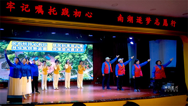 活動中,取材于寧松社區(qū)真實故事的情景劇《南湖暖陽》,藝術(shù)再現(xiàn)了鄰里互助的溫情日常;華錦社區(qū)自編自導(dǎo)自演的情景劇《華錦“民”星,微光閃亮》,將社區(qū)“民星”們植綠煥新、熱心服務(wù)的點滴故事搬上舞臺,生動詮釋了“微光”的力量;水域天際社區(qū)的詩朗誦《以志愿之名書青春華章》,配合著志愿者從舞臺各處匯聚而來的精心設(shè)計,寓意著志愿服務(wù)精神在南湖遍地開花……這些源自生活、貼近民心的節(jié)目,不僅豐富了風(fēng)采展的形式,更讓感動人心的力量在藝術(shù)的共鳴中得以升華和傳遞。