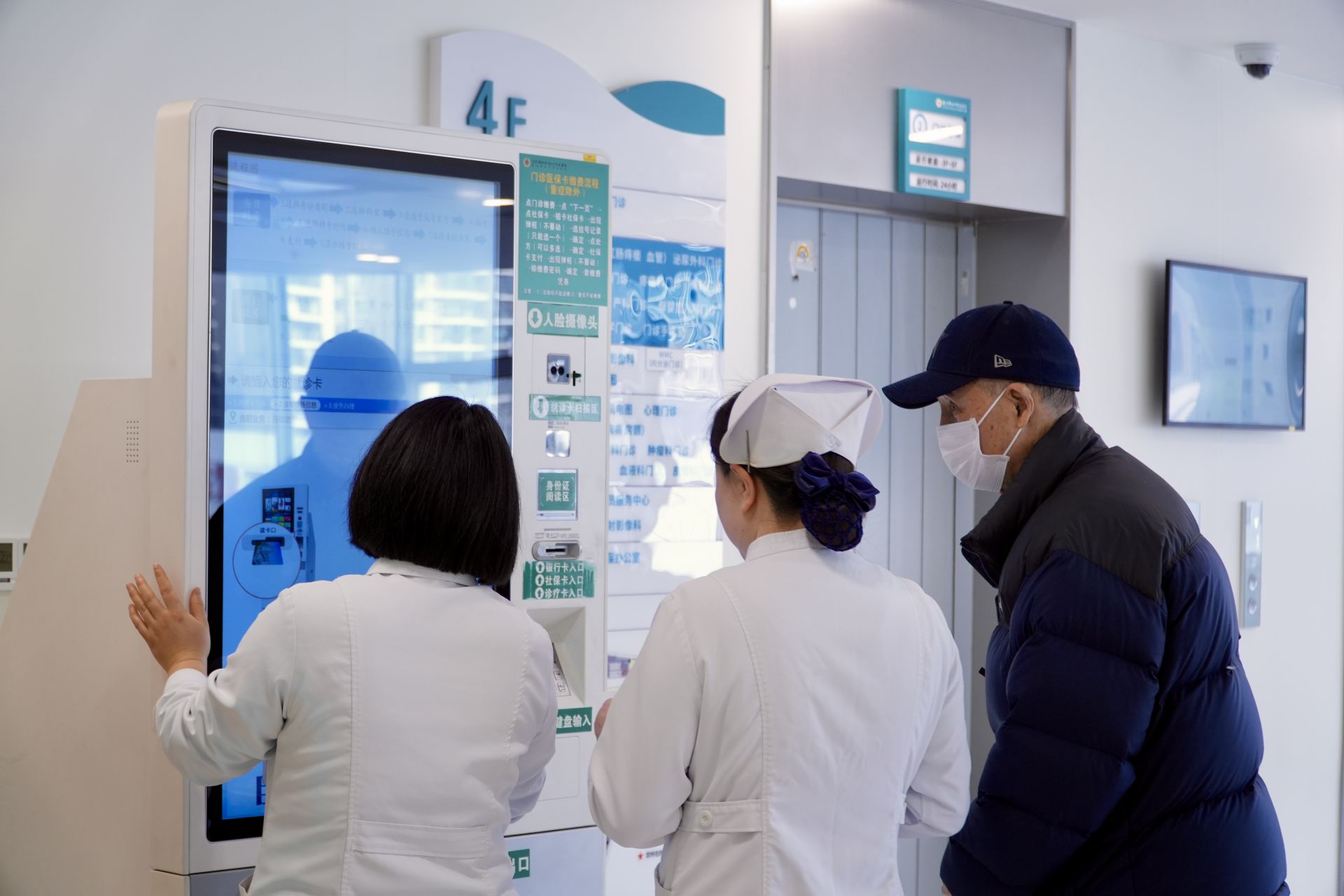 進(jìn)入門(mén)診大廳,導(dǎo)診臺(tái)、自助掛號(hào)機(jī)分布在顯眼位置。記者注意到,多名醫(yī)護(hù)人員和志愿者在大廳內(nèi)來(lái)回巡查,看到行動(dòng)不便的老人,便主動(dòng)上前詢(xún)問(wèn),幫忙完成掛號(hào)等流程,就診秩序平穩(wěn)有序。