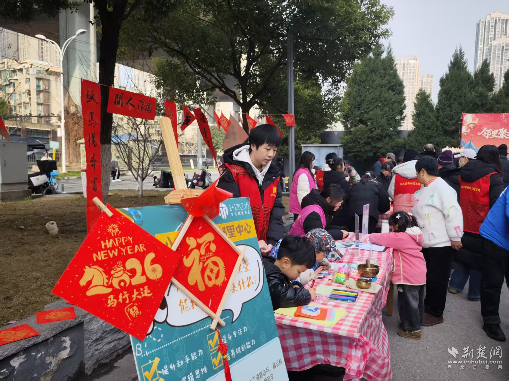 荊楚網(wǎng)(湖北日報網(wǎng))訊(記者 何婧 通訊員 顧蝶)2月1日,唐家墩街道八古墩社區(qū)新時代文明實踐站聯(lián)合中百鄰里匯,開展“我們的節(jié)日·春節(jié)”主題活動。寫春聯(lián)、做手工、便民服務進社區(qū),居民在家門口感受到濃濃年味,也在互動中拉近了彼此距離。