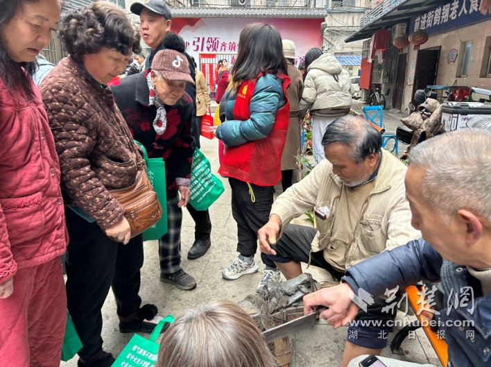 便民服務(wù)區(qū)人氣最旺。武商集團世貿(mào)廣場帶來的專業(yè)皮具清理服務(wù),讓不少“老物件”煥然一新;理發(fā)、磨刀、洗鞋、洗鍋等攤位前,志愿者們動作嫻熟、服務(wù)周到,幫居民解決生活中的“關(guān)鍵小事”。