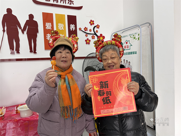“金曲聯(lián)唱”環(huán)節(jié),長(zhǎng)者們齊唱《恭喜恭喜》《新年好》等經(jīng)典曲目,熟悉的旋律勾起共同記憶,現(xiàn)場(chǎng)歡聲笑語(yǔ)不斷。“共享年?!杯h(huán)節(jié)將氣氛推向高潮,長(zhǎng)者們精心創(chuàng)作的窗花和春聯(lián)作品引得陣陣贊嘆。大家互道新春祝福,拍攝“全家?!贝蠛险?,定格團(tuán)圓溫暖瞬間。