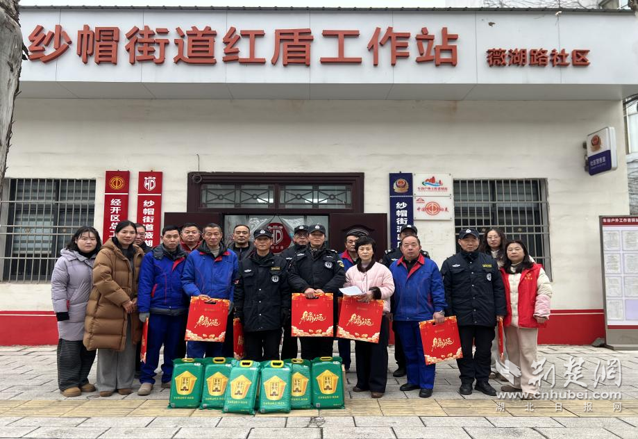 荊楚網(wǎng)(湖北日?qǐng)?bào)網(wǎng))訊(通訊員吳悠琪)2月10日,武漢經(jīng)開(kāi)區(qū)紗帽街道薇湖路社區(qū)工會(huì)驛站開(kāi)展春節(jié)慰問(wèn)、新春送暖活動(dòng),為轄區(qū)內(nèi)保安、保潔等新業(yè)態(tài)從業(yè)人員送上大米、春聯(lián)等慰問(wèn)品,向節(jié)日期間堅(jiān)守崗位的一線工作人員送上新春?jiǎn)柡颉?/p>