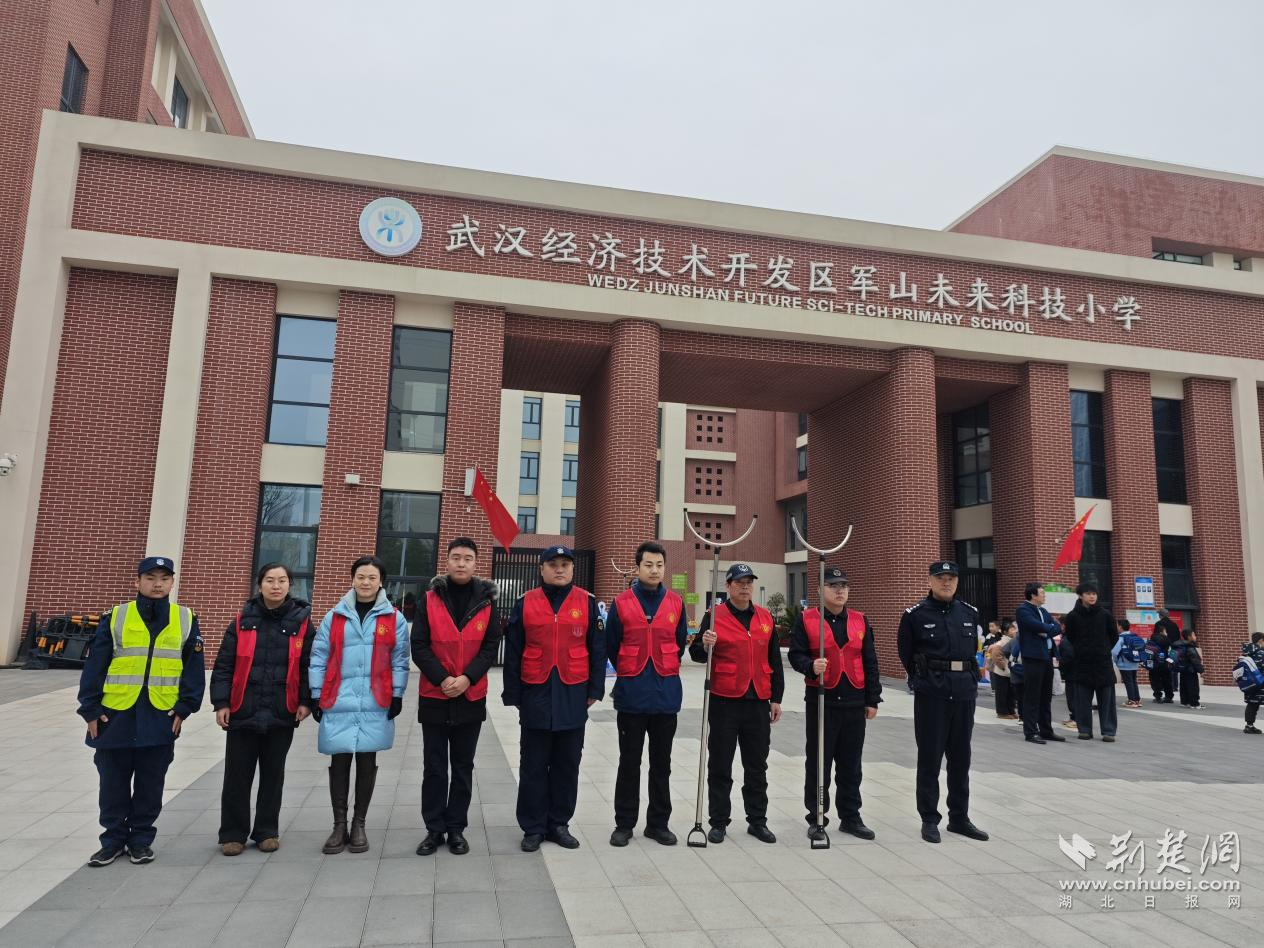 荊楚網(wǎng)(湖北日報網(wǎng))訊(通訊員 吳曉琪、楊慕曦、曹悅、黃盈)春風(fēng)送暖,開學(xué)啟航。3月4日,2026年春季新學(xué)期開學(xué)第一天,武漢經(jīng)開區(qū)軍山新城蒲潭社區(qū)、龍湖社區(qū)、小軍山社區(qū)、川江池社區(qū)同步啟動春季開學(xué)護學(xué)專項行動,聯(lián)動社區(qū)志愿者、民警、物業(yè)等多方力量,在學(xué)校周邊引導(dǎo)接送車輛即停即走,護送學(xué)生安全通過馬路,及時排查消除各類安全隱患,用實際行動為孩子們筑起了一道安全的“防護墻”,為廣大師生營造了安全、有序、暢通的入學(xué)環(huán)境。