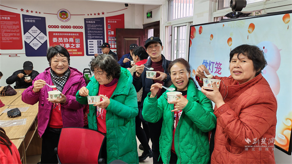 除了共慶歡樂(lè),更有專屬關(guān)懷。長(zhǎng)江紫都社區(qū)聯(lián)合中民萬(wàn)家(武漢)居家養(yǎng)老服務(wù)有限公司舉辦活動(dòng),工作人員和志愿者還專程上門(mén),將滿載心意的暖心湯圓送到行動(dòng)不便的老人家中,傳遞“一個(gè)都不少”的社區(qū)溫情。梅花苑社區(qū)在“湯圓暖心,喜樂(lè)元宵”活動(dòng)中,別出心裁地融入了健康關(guān)懷,邀請(qǐng)口腔醫(yī)院醫(yī)生開(kāi)展健康講座,為老人們講解春季保健和口腔護(hù)理知識(shí),在傳承民俗的同時(shí),守護(hù)長(zhǎng)輩的健康。佳韻社區(qū)在活動(dòng)中講解元宵節(jié)由來(lái),帶領(lǐng)老人們重溫文化根脈。手工制作燈籠時(shí),大家互幫互助,在協(xié)作中加深情誼。