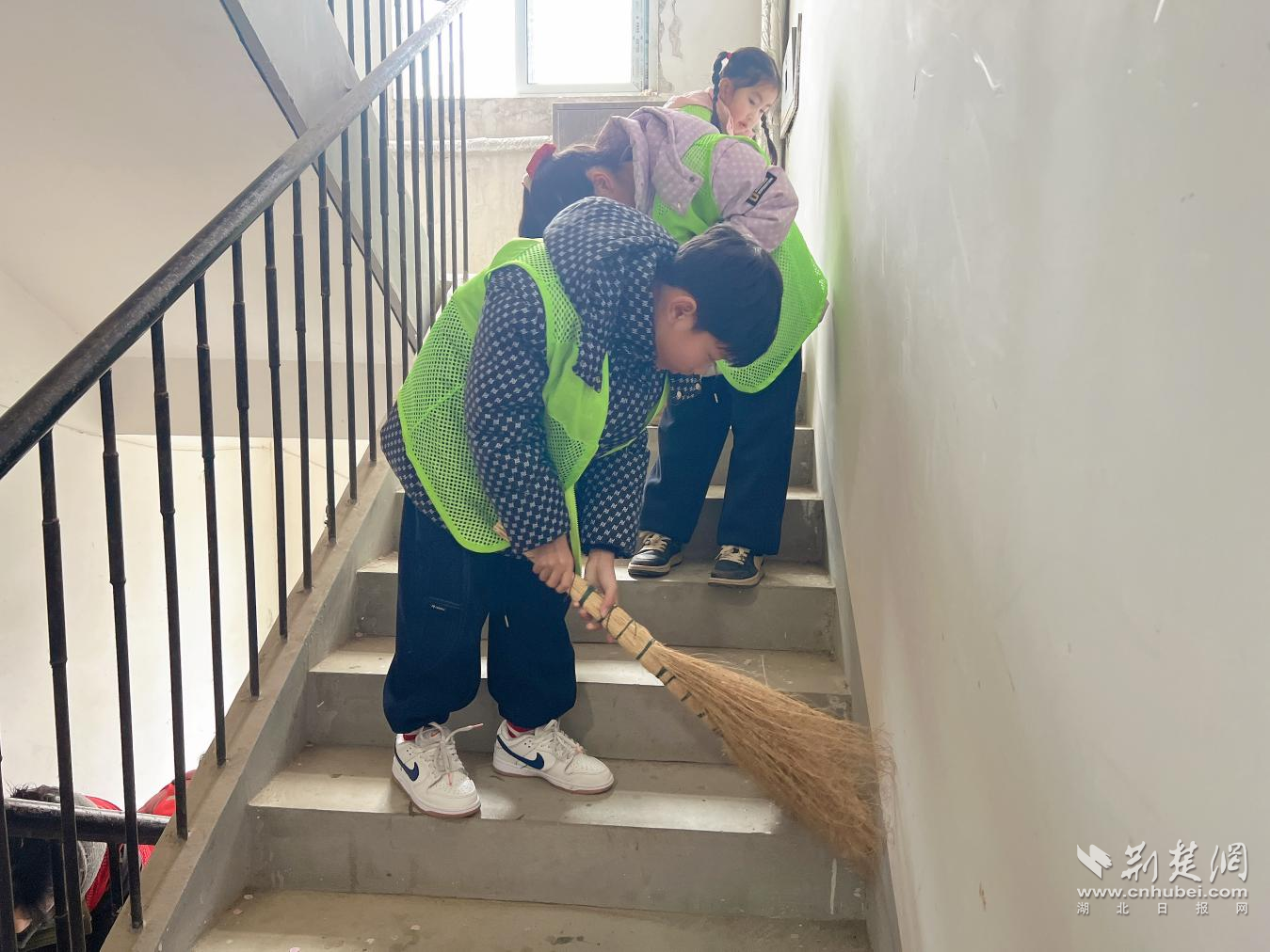活動(dòng)中青少年們化身“環(huán)保小衛(wèi)士”進(jìn)入樓棟開(kāi)展衛(wèi)生打掃。通訊員供圖