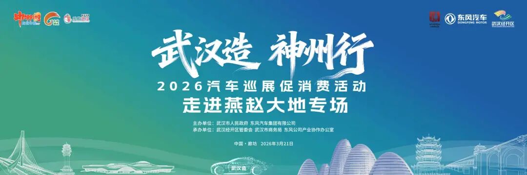 風(fēng)起車(chē)谷,智惠燕趙。3月21日,“武漢造 神州行”2026汽車(chē)巡展促消費(fèi)活動(dòng)·走進(jìn)燕趙大地專(zhuān)場(chǎng)將在河北省廊坊市舉行。這也是“武漢造”汽車(chē)巡展促消費(fèi)活動(dòng)首次走進(jìn)燕趙大地。