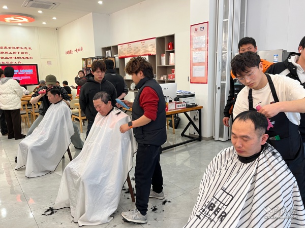 義診區(qū)旁,武昌“新興學(xué)院”天姿美發(fā)教學(xué)點(diǎn)的志愿者們支起簡易理發(fā)攤。他們手持剪刀,耐心詢問每一位騎手的發(fā)型偏好,細(xì)致滿足各式需求。正值“龍?zhí)ь^”理發(fā)的傳統(tǒng)吉日,短短半天時(shí)間,志愿者們便為40余名騎手換上了精神抖擻的新發(fā)型,讓大家在奔波忙碌中也能容光煥發(fā)。街道工作人員全程引導(dǎo),維持秩序、遞上熱水,現(xiàn)場井然有序,暖意流淌。