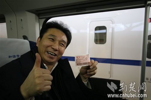 荊楚網(wǎng)消息(記者姚啟慧)26日上午9時(shí),武廣高鐵發(fā)出首趟列車,不少武漢游客專門前來(lái)體驗(yàn),在3號(hào)車廂,記者遇到了武漢著名“笑星”田克兢。他坦言,乘高鐵體驗(yàn)既驚又喜,今后要把這次經(jīng)歷融入自己作品中。