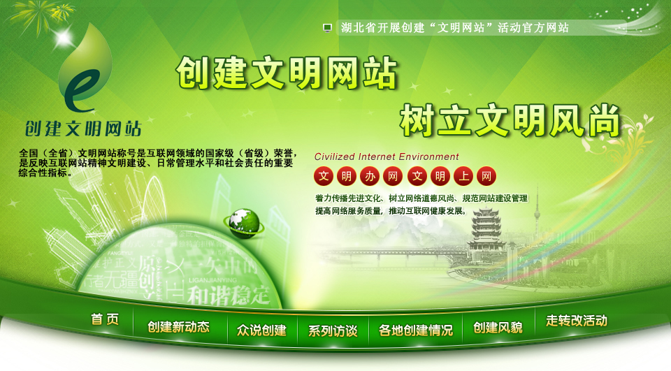 首屆湖北省文明網(wǎng)站評選擬授予13家網(wǎng)站“首屆湖北省文明網(wǎng)站”稱號,授予10個(gè)頻道“首屆湖北省互聯(lián)網(wǎng)文明頻道”稱號,授予20家網(wǎng)站“首屆湖北省‘文明網(wǎng)站’創(chuàng)建活動(dòng)先進(jìn)單位”稱號。