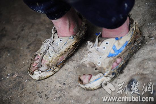 在大方縣興隆村,小女孩高燕穿的球鞋看了讓人心疼。5個腳趾全露在外面,鞋面與鞋底僅靠幾根棉絲相連,高燕一直都是靠這雙鞋爬山上學(xué),到了學(xué)校再換上好一點的球鞋。