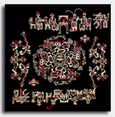 湖北銀飾以白銀為原料,純度高,久用耐磨,不易腐蝕,光澤奪目,極顯高貴;一般為富裕人家的飾物,常有耳墜、戒指、手鐲、發(fā)簪、手鏈等。最為精彩的是帽飾人物,常用高浮雕、淺浮雕、鑲嵌和鏤空的表現(xiàn)手法,圖案多為龍鳳吉祥、長(zhǎng)命富貴、麒麟送子等。制…… 詳細(xì) —————————————————